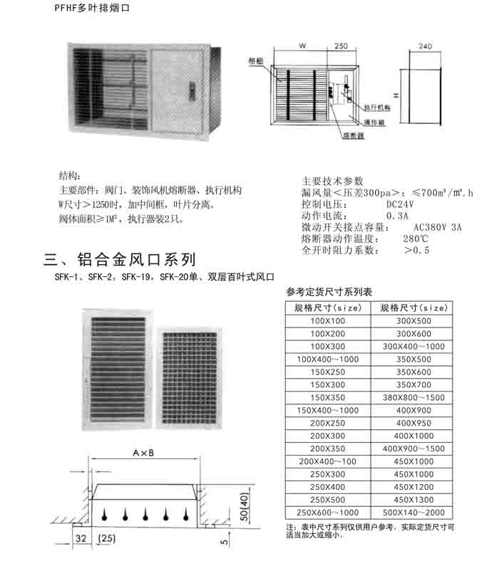 一、FHF WSDc-K、PFHF WSDc-K 系列防火閥、排煙閥、排煙口、送風口